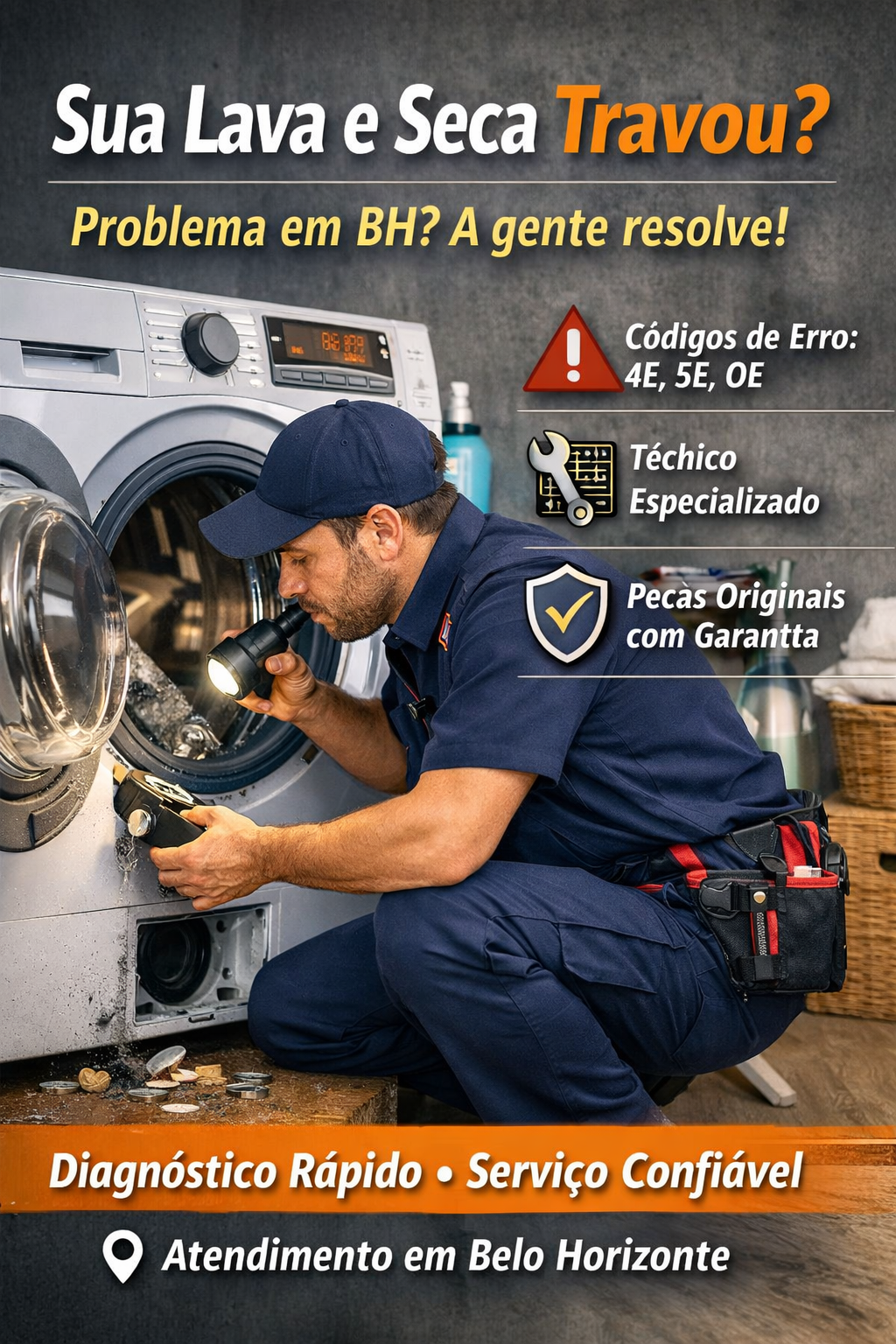 Se você está em Belo Horizonte e sua lava e seca começou a falhar, fazer barulho fora do normal ou simplesmente se recusa a ligar, você sabe bem o impacto disso na rotina. Roupa acumulando, tempo perdido e aquela sensação de “e agora?”.